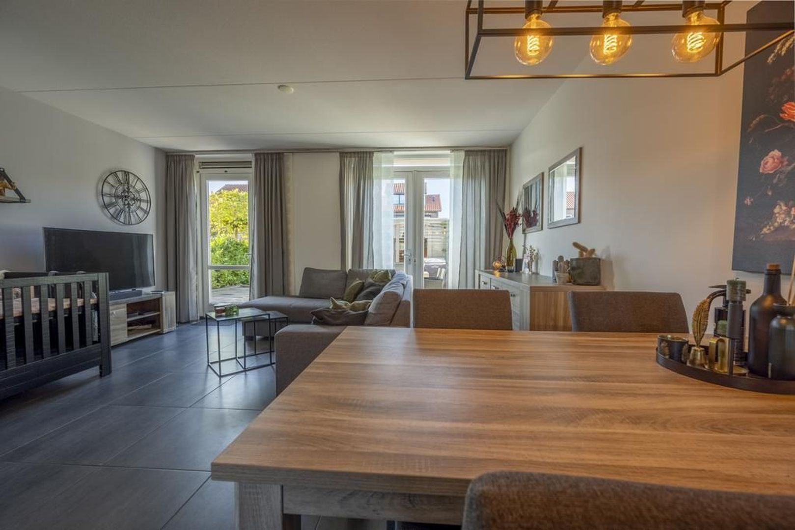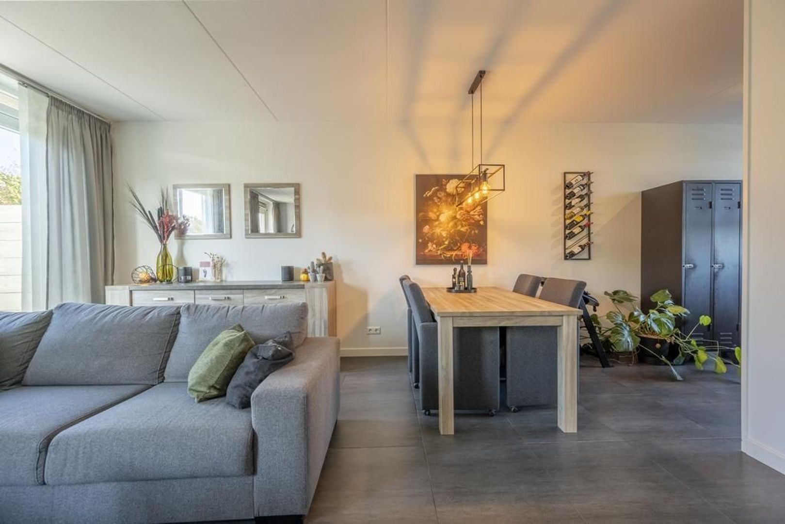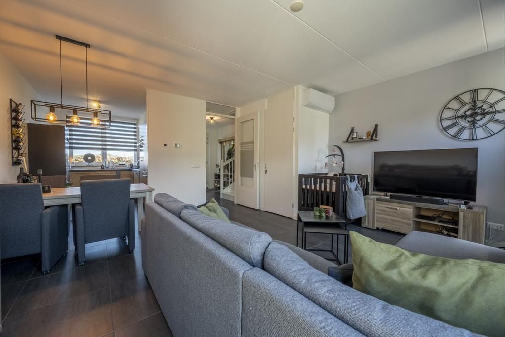 De begane grond is geheel voorzien van moderne plavuizen met daaronder comfortabele vloerverwarming. De wanden zijn voorzien van glasvliesbehang.