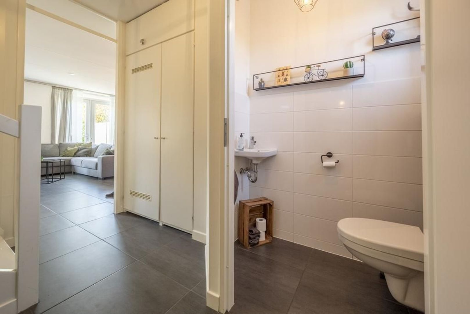 De indeling is globaal als volgt: entree/hal met moderne toiletruimte met wandcloset en fonteintje, meterkast, vaste kast en trapopgang.