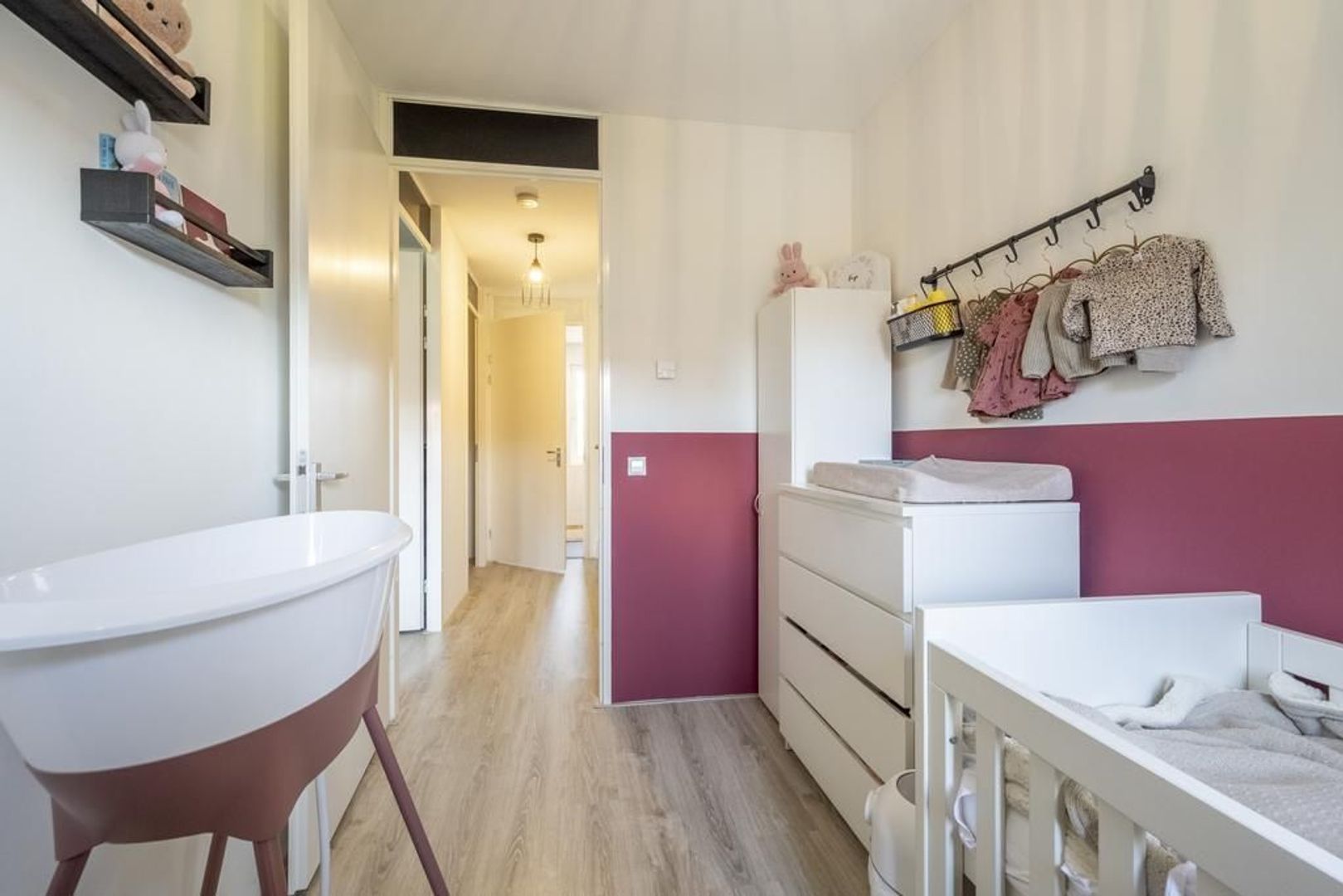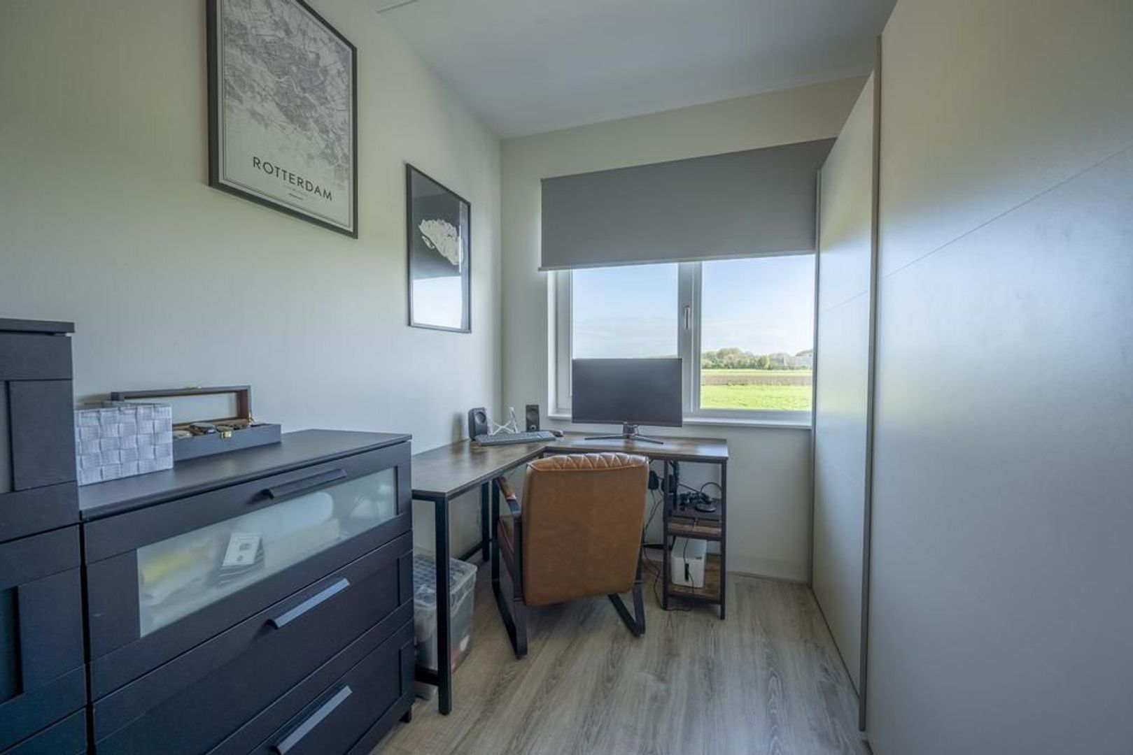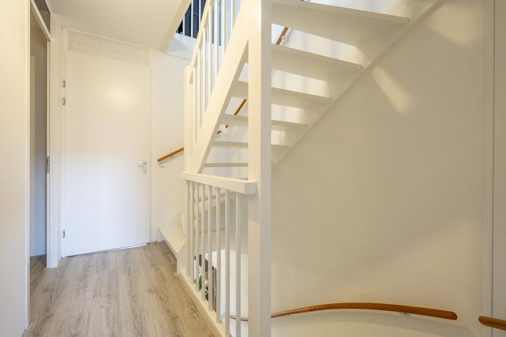 Ook deze verdieping is geheel voorzien van een mooie laminaatvloer met vloerverwarming.