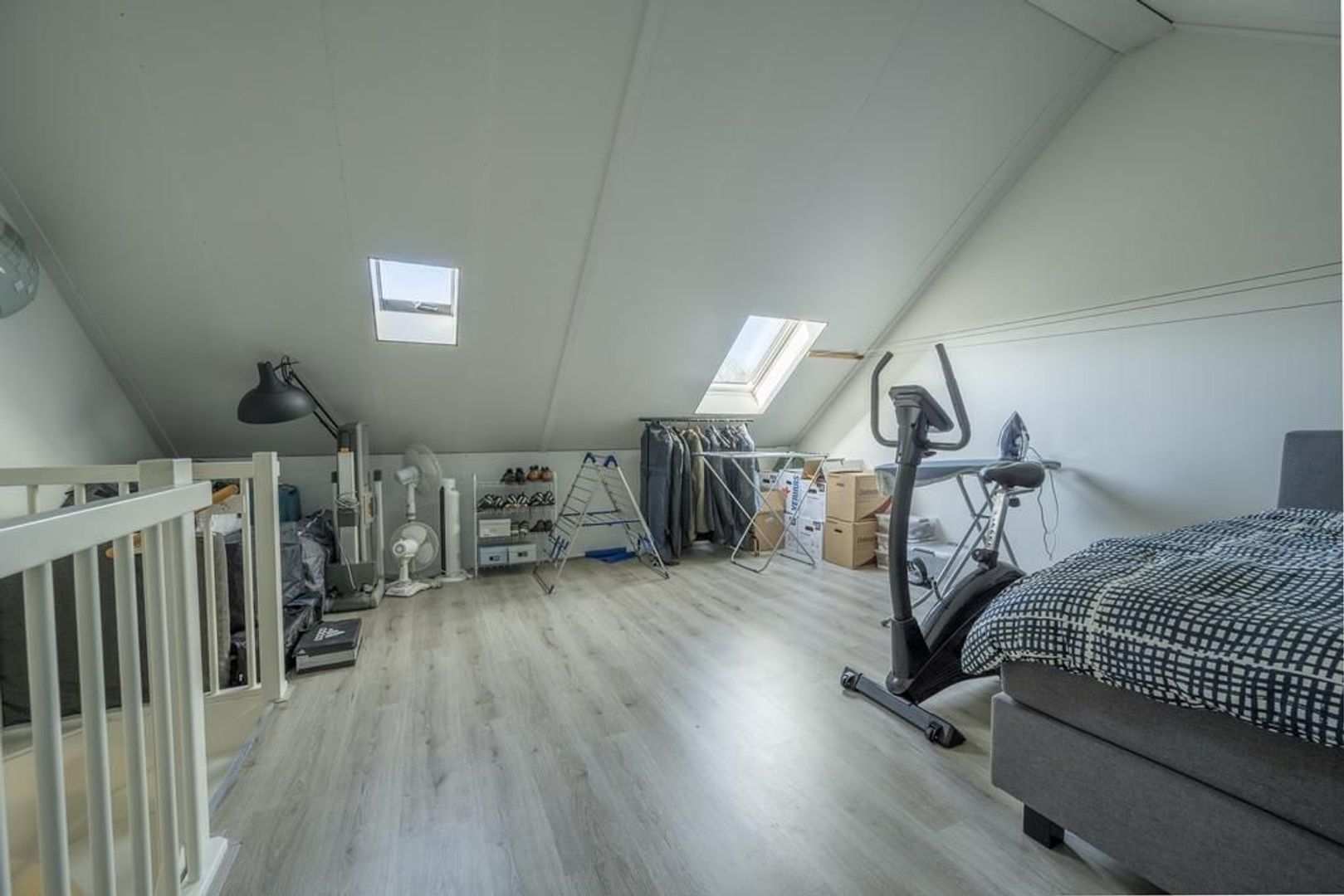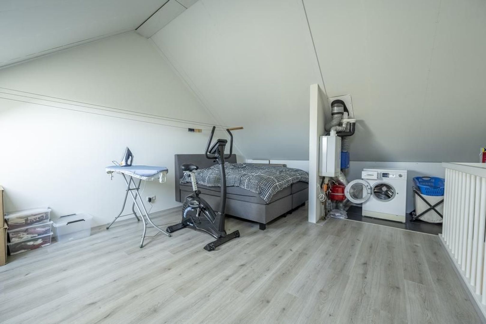 De tweede verdieping is nu een open ruimte met nog veel mogelijkheden. Door de twee Velux dakramen is het al lekker licht. Hier bevinden zich ook de opstelplaats voor de cv-ketel (Intergas 2014), de mechanische ventilatie en er is plek voor de wasmachine en droger.