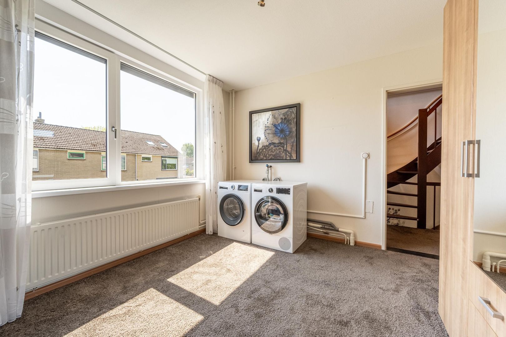 Op de voorzolder hangen de cv-ketel en de omvormer en is eveneens ruimte voor de wasmachine. De derde slaapkamer is groot en biedt een weids uitzicht.