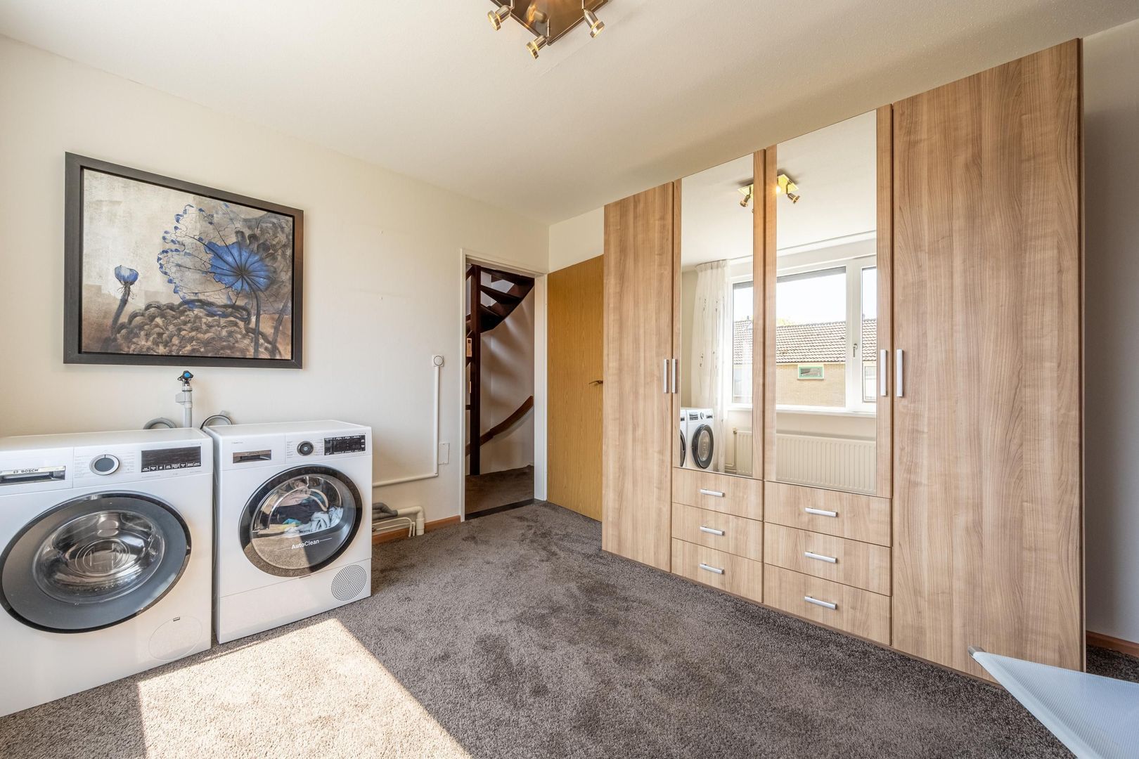Één van de kamers heeft een inloopkast en in de andere zijn de aansluitingen voor de wasapparatuur.