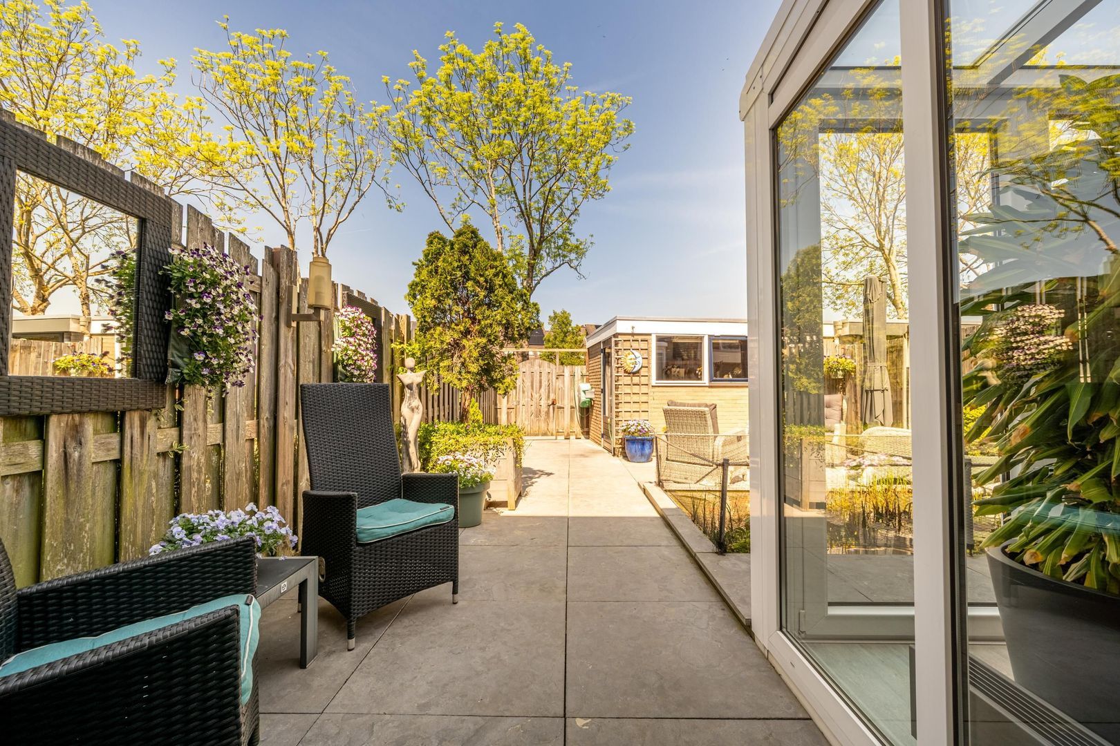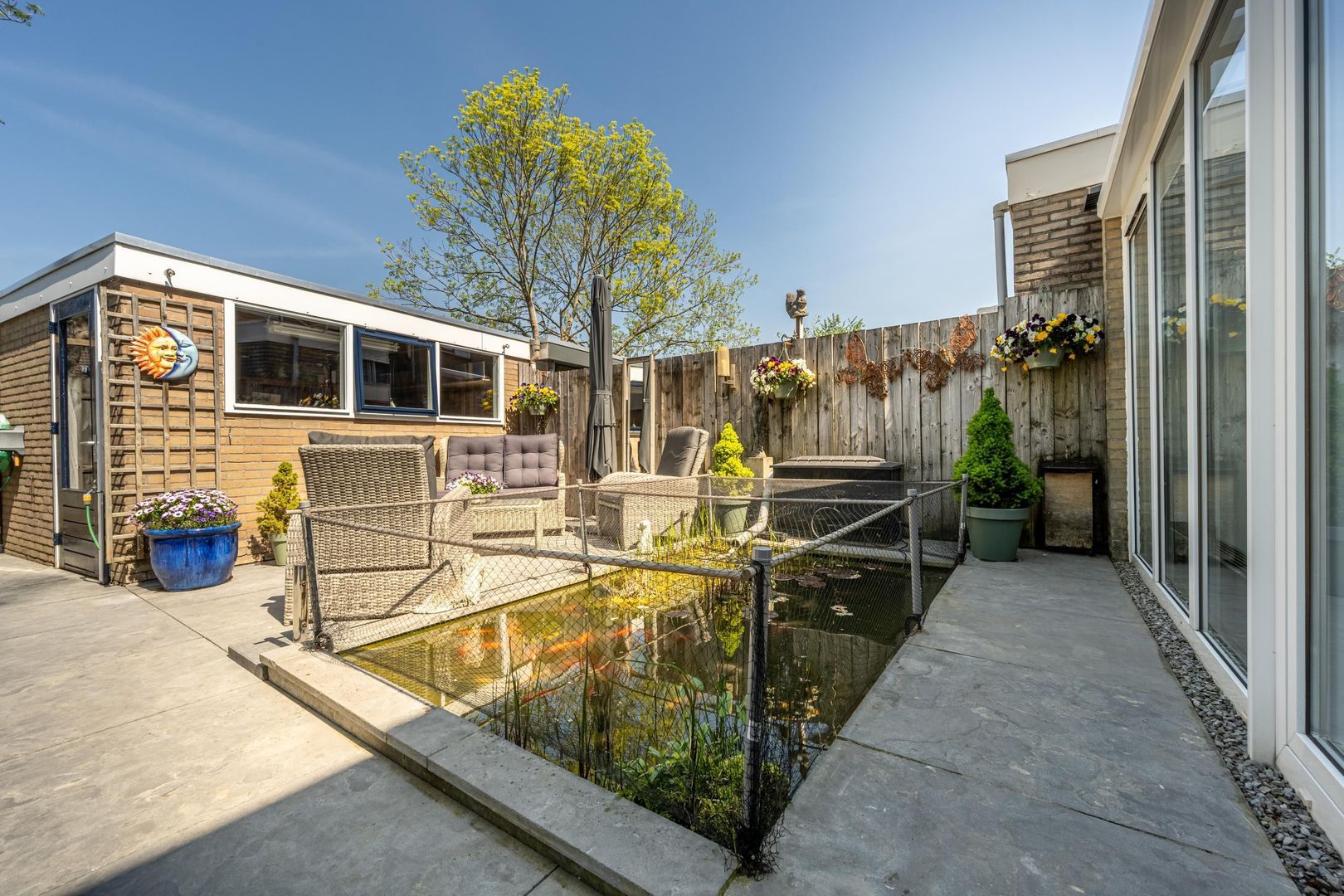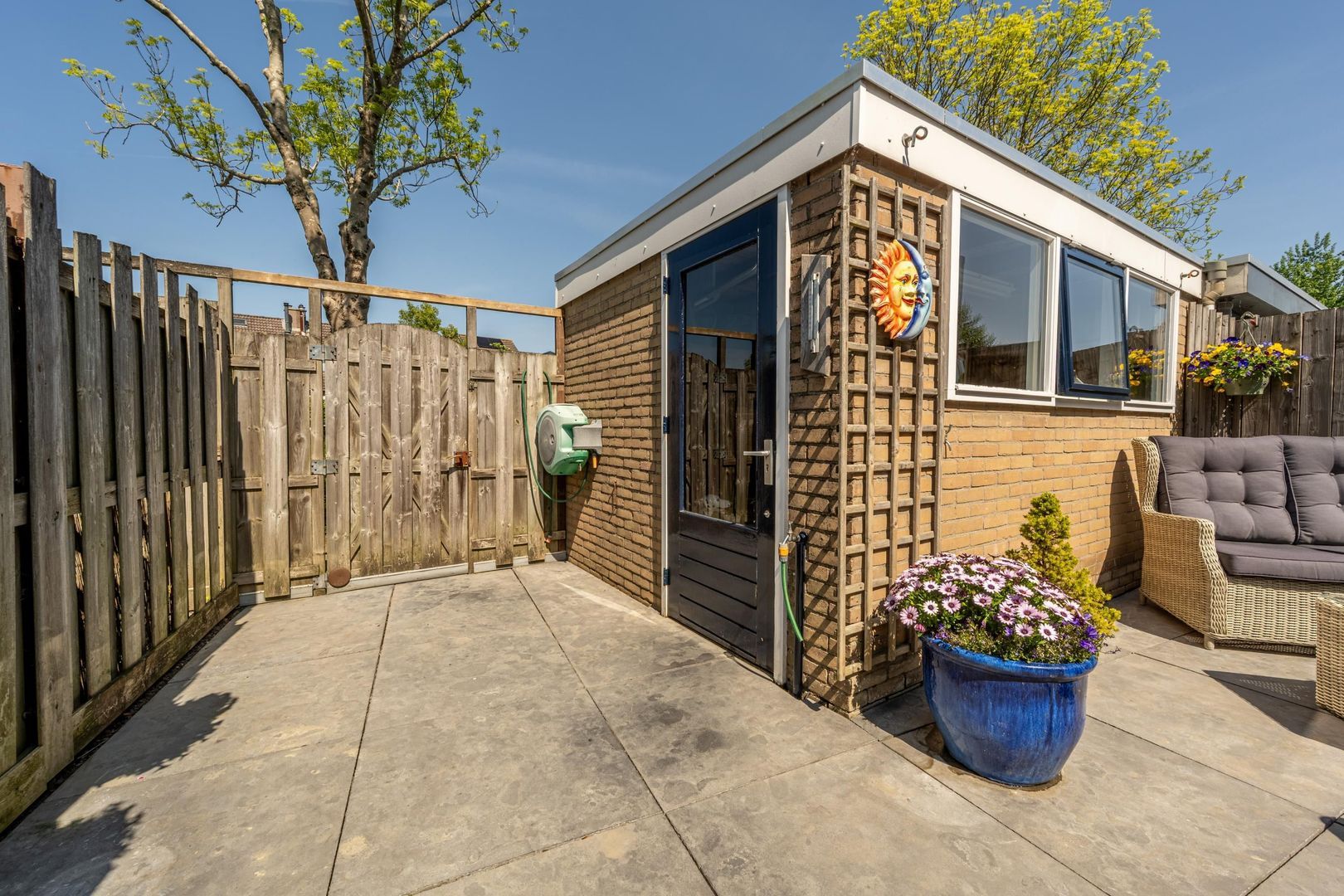 De fijne achtertuin grenst aan een mooie bomenrij en ligt op het noorden. Hierin staat een stenen berging. De dakbedekking van de berging is in 2021 vernieuwd.