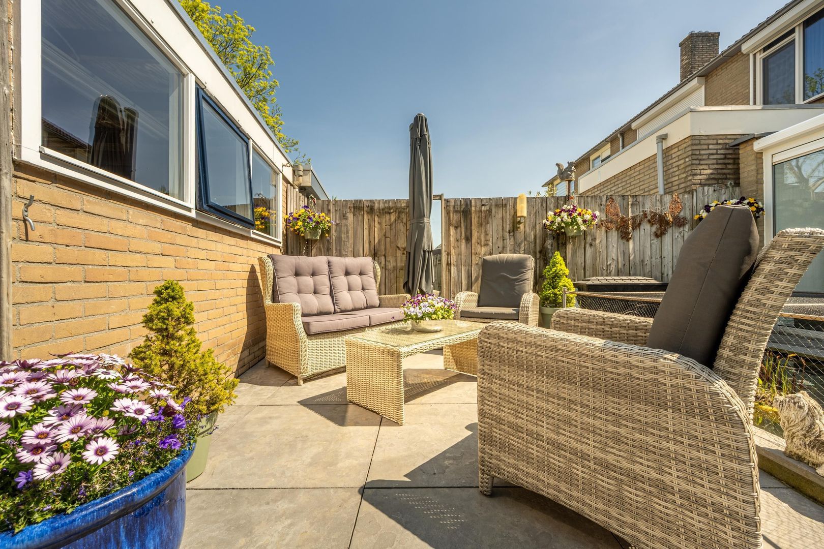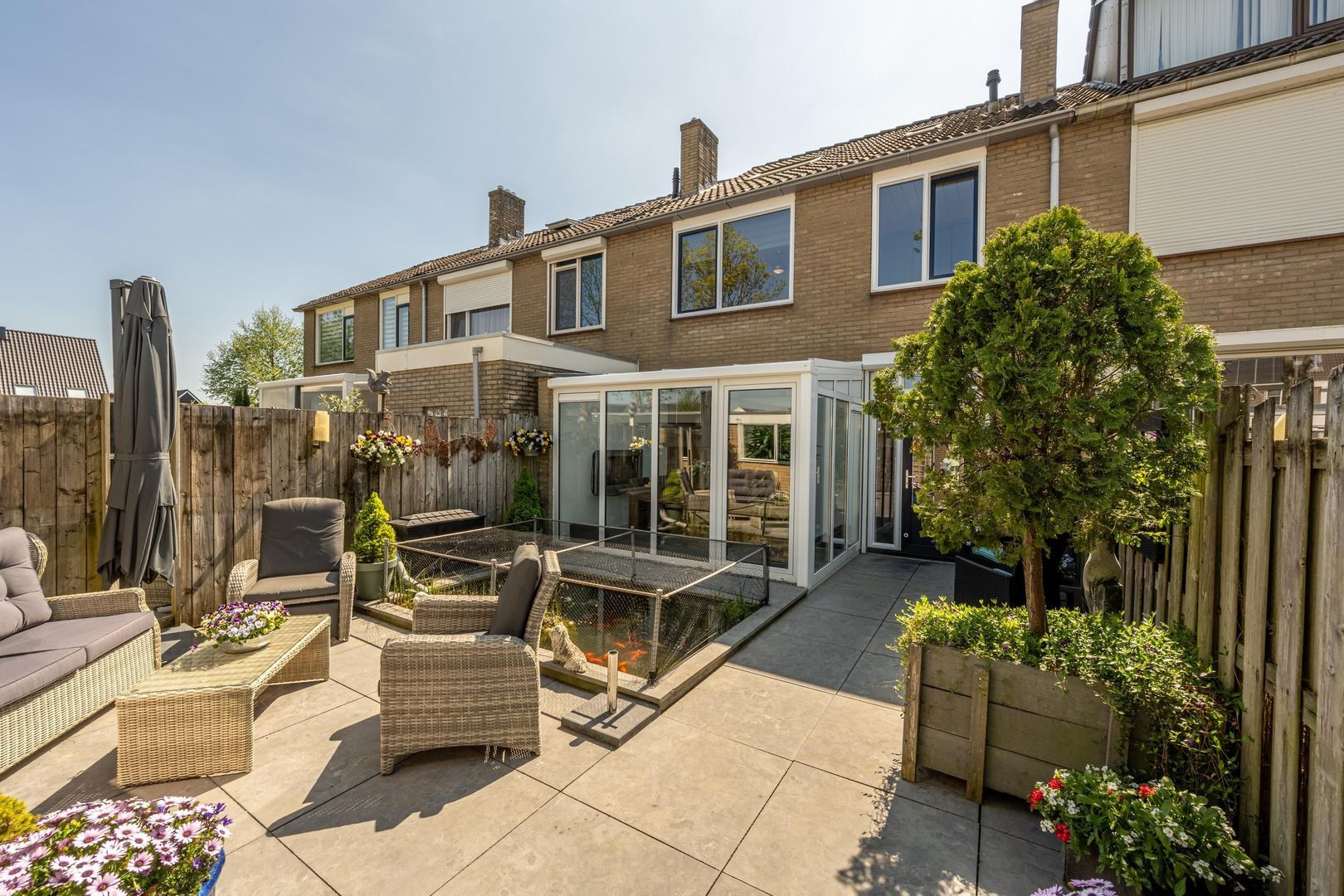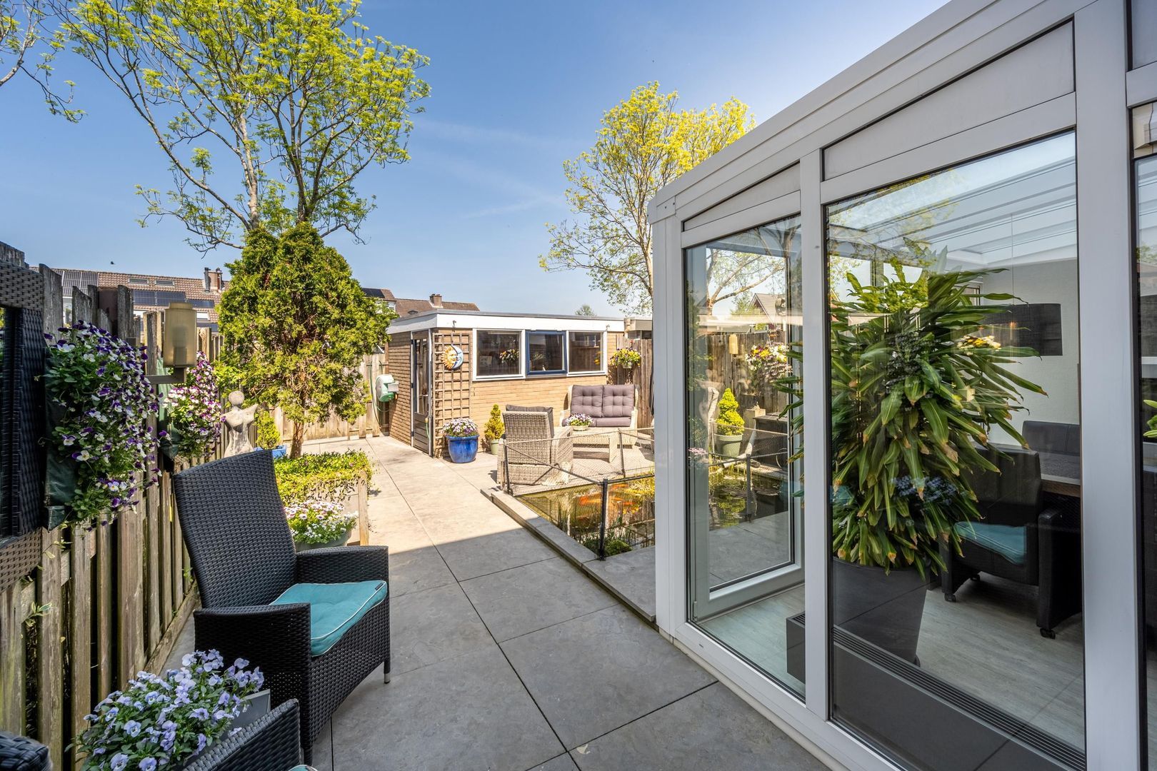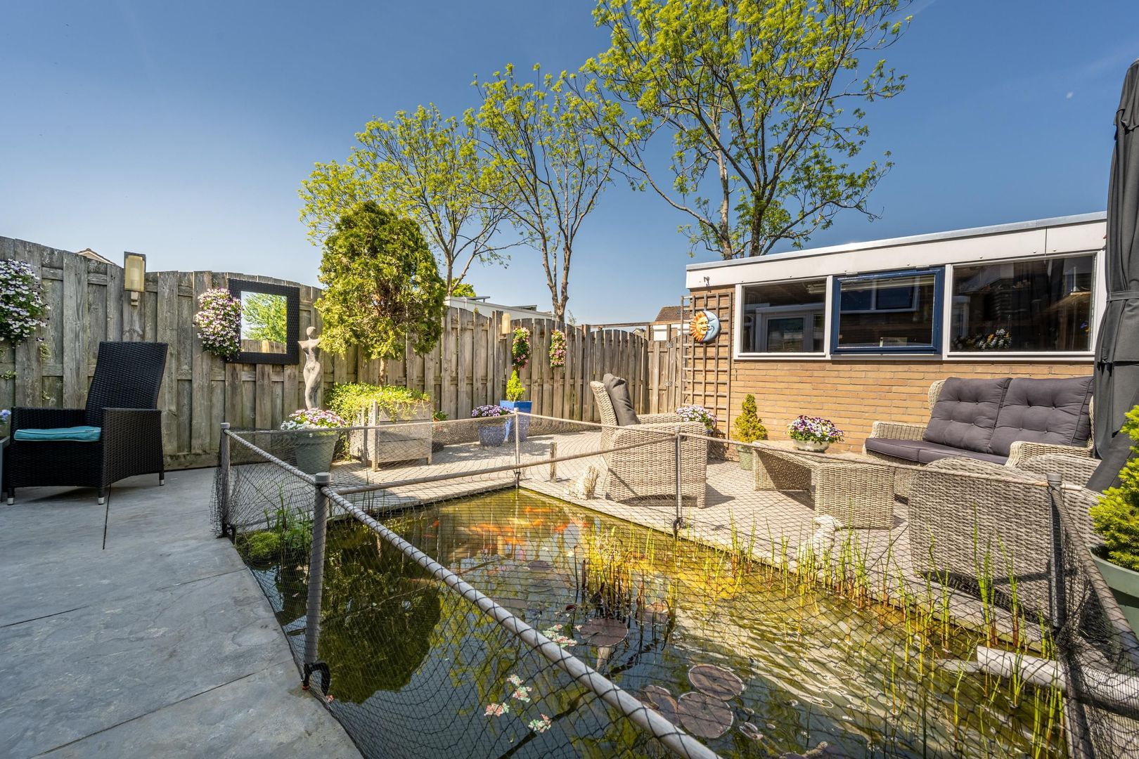 De fijne achtertuin grenst aan een mooie bomenrij en ligt op het noorden. Hierin staat een stenen berging. De dakbedekking van de berging is in 2021 vernieuwd.