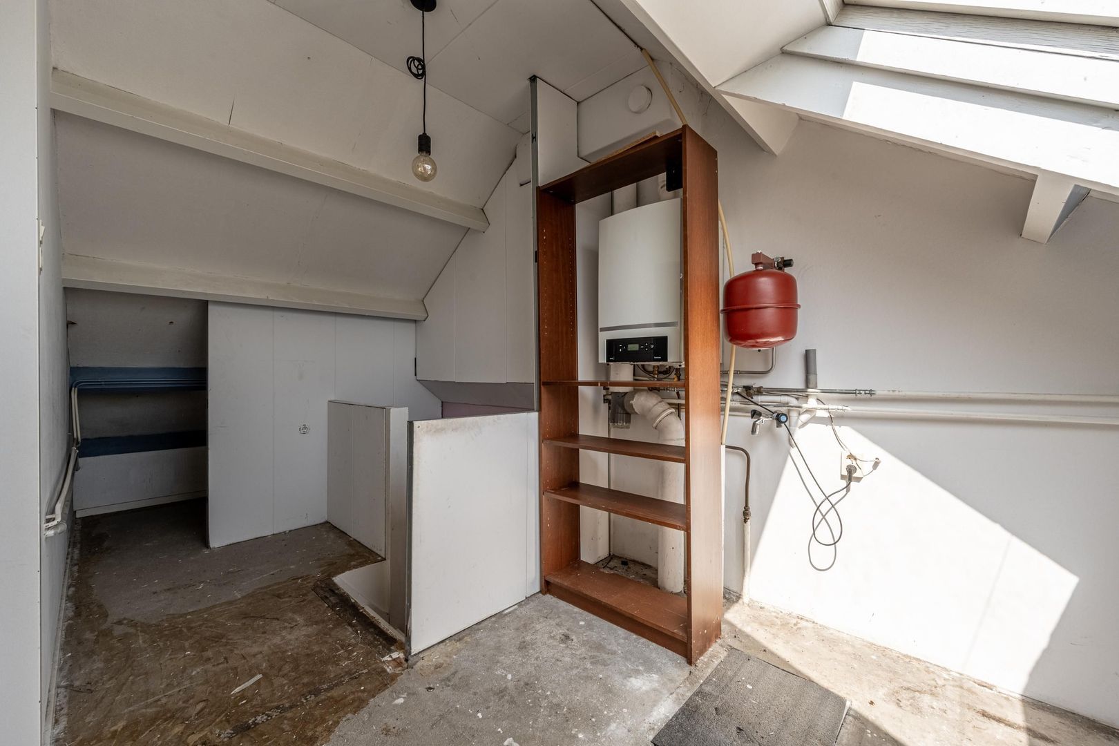 Tweede verdieping: voorzolder met de opstelplaats van de Nefit combiketel uit 2012. Tevens bevindt zich op de voorzolder de aansluiting voor een wasmachine. Zolderkamer/4e slaapkamer met een in 2012 vernieuwde dakkapel.